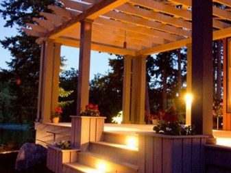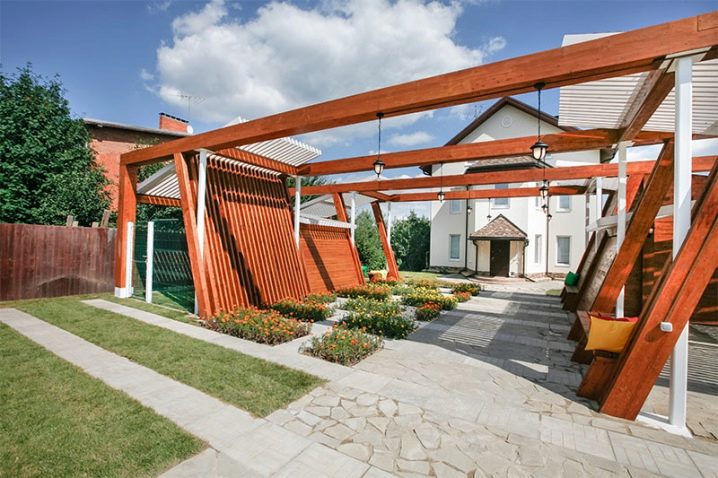تتلاءم الأسطح الخشبية بشكل عضوي مع المناظر الطبيعية للموقع ، فهي جميلة وتحمل طاقة جيدة وتحمي من الحرارة بشكل أفضل من المواد الاصطناعية. قبل استخدام الألواح والشرائح والقضبان تعامل بتركيبة مضادة للفطريات.