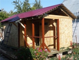 - تم بناء Hozblok والمظلة من لوح مموج ، مثبت على إطار معدني.