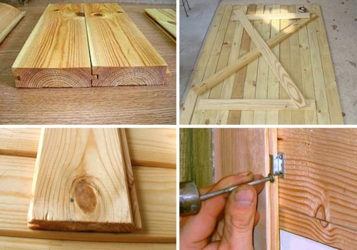 - يتم توصيل الألواح المتباينة في كل واحد بمساعدة غراء الخشب ووصلة شوكة الأخدود. يتم تشحيم المادة بالأخاديد والمسامير. يمكنك تقوية سلامة ورقة الباب باستخدام مشبك خاص.