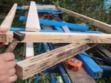 - يتم إدخال العارضتين في أخاديد خاصة لتقوية الهيكل. لجعلهم يكذبون جيدًا ، يتم النقر عليهم بمطرقة. وكذلك الأقفال على شكل براغي تساهم في الموثوقية.
