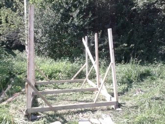 يمكن وضع الركائز في القاعدة في كل زاوية. ليس من الضروري استخدام أعمدة الأسمنت أو الطوب ، حيث يفضل استخدام المواد التالية: