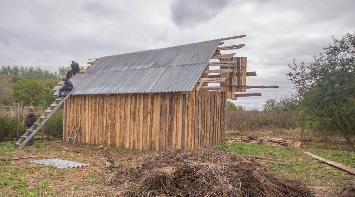 كما ذكرنا سابقًا ، غالبًا ما يتكون السقف من لائحة.. خصائص ثمانية أوراق موجة كافية تماما. يتم تحديد طولها مع مراعاة تداخل الامتداد وتشكيل نتوء يمنع سقوط المطر على الحائط. لتصنيع الإطار ، يتم استخدام كتل خشبية بحجم ، على سبيل المثال ، 50 × 80 مم. الألواح التي يبلغ سمكها 25 مم تذهب إلى الشرائح – يتم تنظيفها بعناية من اللحاء.