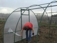 - نقوم بتمديد الدفيئة فوق الأسرة ، والتي تقرر تغطيتها ؛