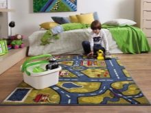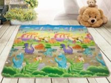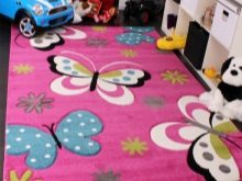 Всички покрития за детска стая са полу вълнени, те са много топли и в същото време са лесни за почистване и дори измиване. Размерът на купчината е 1 см, тя е срязана, плътна, мека. Моделът върху килима е направен в смесена техника на редуващи се купчини с различни дължини и редуващи се бримки и нарязани купчини. Някои модели се предлагат в няколко цвята.