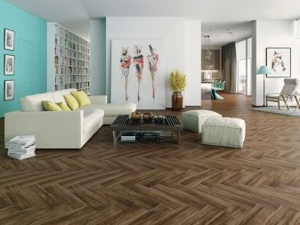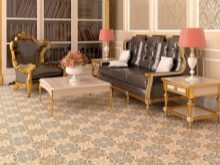 В класическия интериор покритие, имитиращо паркет, положено под формата на различни шарки, изглежда добре. Също така, подът, украсен с плочки с цвят за различни минерали, например малахит, ще изглежда доста оригинален..