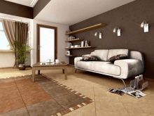 - Цветът на пода трябва да съответства на декора на стаята. Тук е по -добре да използвате правилата за цвят и да изберете стандартни комбинации, например сиво – розово, бяло – синьо. В този случай цветният под може да стане както основен фон на стаята, така и акцент в нея. Във втория случай покритието ще изисква някакъв вид опора, например ваза или възглавници на дивана, за да съответства.