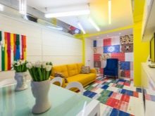 За стила на поп арт обикновено се полагат ярки контрастни плочки от няколко цвята.