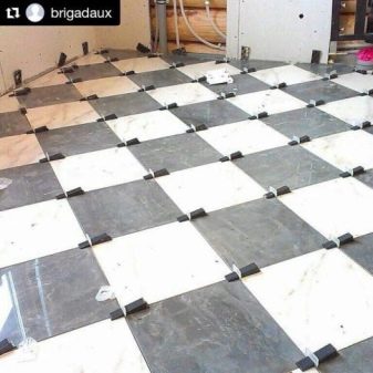 Нека отбележим един нюанс: системата “плюс” не е единствената техника за полагане на плочки по традиционния начин. Неговите съставни елементи могат да бъдат положени между плочките не само в прицела. В същото време точността на завършената работа няма да намалее. Освен това, не забравяйте за ъглите. Те също могат да бъдат компресирани от DLS системата.. За да направите това, изобщо не е необходимо да натискате плочките от двете страни: един ръб е достатъчен.
