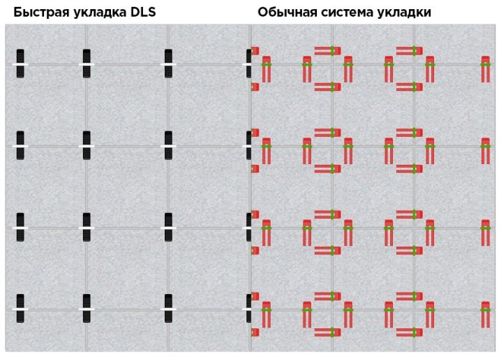 - Системата за инсталиране на DLS съкращава времето за облицовка с около 4 пъти, дори ако това е вертикален под.