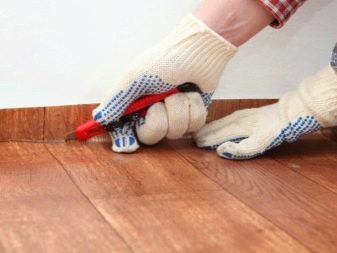 - Поправете продукта. Ако площта на помещението е по -малка от 20m², первазите са достатъчни за тази цел. Ако тя надвишава тази цифра, се използва специално лепило..