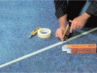 - поставете широка лепяща лента върху шева и направете разрез в ставите. Това ще предпази ръбовете на платното от лепило;