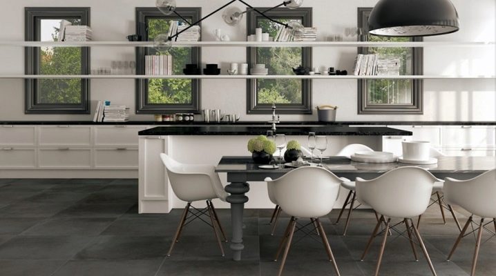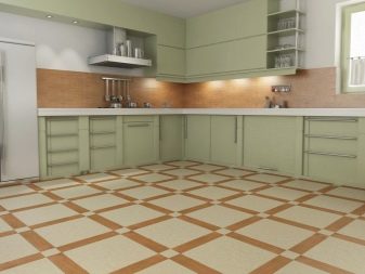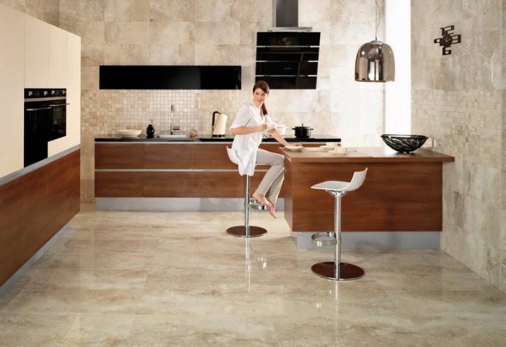 За стая в стил минимализъм или хай-тек е подходящ обикновен под без украшение.. Класическата кухня ще бъде допълнена от мраморни плочки. За интериор в еко стил е подходящо покритие с имитация на естествено дърво или паркет..