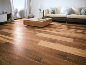 Отделно можем да подчертаем керамичен паркет големи размери. Това е удължена плочка, имитираща естествената структура на дърво, камък, бетон, мрамор или покрита с декоративни шарки. Тази опция е представена от следните типични размери: 15×60 cm; 15х90 см; 15х120 см; 20×80 см.