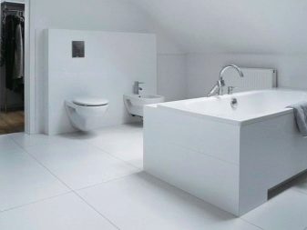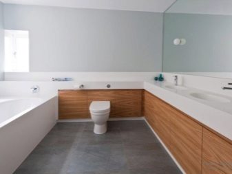 Особено изгодна гладка и равномерна повърхност, оформена с помощта на широкоформатно покритие, ще изглежда в интериора на минималистична баня.
