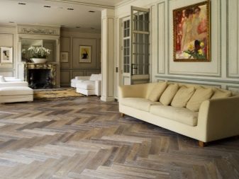 - Паркет. Тази дървена настилка се превърна в олицетворение на класиката. Обикновено такива материали са с високо качество, но в същото време са доста скъпи. Въпреки това, тяхната цена и характеристики до голяма степен зависят от това какъв вид дърво е използвал производителят..