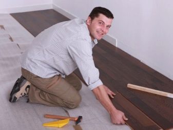 Ламинатът се полага с трион или електрически мозайка, чук, полиетиленово фолио, молив, линийка. За да направите пода възможно най -равномерен, използвайте субстрат.