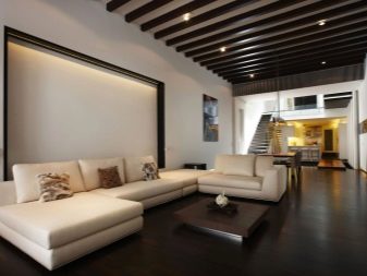 Именно залата е „лицето“ на апартамента; тя демонстрира на гостите финансовото състояние и вкусовете на собственика на апартамента. Тъй като хората често се събират в хола, за него трябва да се изберат покрития, които се различават не само по естетика, но и по лекота на поддръжка, издръжливост. Идеалният вариант за такава стая е паркет.. Ако такива материали са твърде скъпи за вас, можете да изберете висококачествен ламинат..