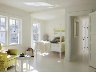 - Бял. Този цвят е подходящ за помещения, където има малко естествена светлина. Изберете зелени стени и бели подове, ако се стремите към свежа и спокойна атмосфера. Комбинацията от жълто и бяло е много добър вариант за почитателите на класиката..