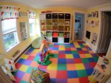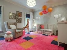 За такива помещения трябва да изберете само материали, които са безопасни и екологични. Не трябва да има изпарения от тях, които могат да повлияят негативно на здравето на бебето. Трябва да внимавате с естествените килими – някои са алергични към тях. По-добре е да изберете висококачествено синтетично покритие за детската стая. Можете да изберете ламинирани, коркови материали.