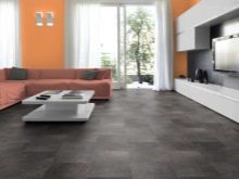 Подовите настилки в хладен тон приветстват стилове: класически, реколта, минимализъм. Наличието на сиво добавя строгост и елегантност в интериора. Той формира успешни дуети с черно и бяло.