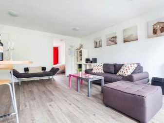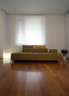 - Липса на светлина в стаята – причина за завършване на пода с лъскаво покритие в светли цветове.
