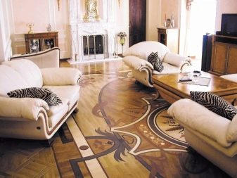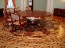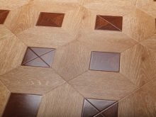 - паркет – такова покритие се избира в селски жилища, където квадратите ви позволяват да демонстрирате в цялата си слава фантастични шарки или композиции от розетки и бордюри;