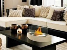 - Мебелите рядко се поставят върху кожен килим, за да не се наруши структурата на купчината. Той може да се изстиска и деформира и не е лесно да приведете килим от естествени влакна в първоначалната му форма. В допълнение, собствениците на стаята играха контрастно, комбинирайки в една композиция както квадратен килим, така и кръгла маса с лек дизайн.