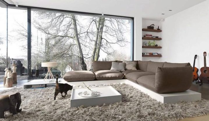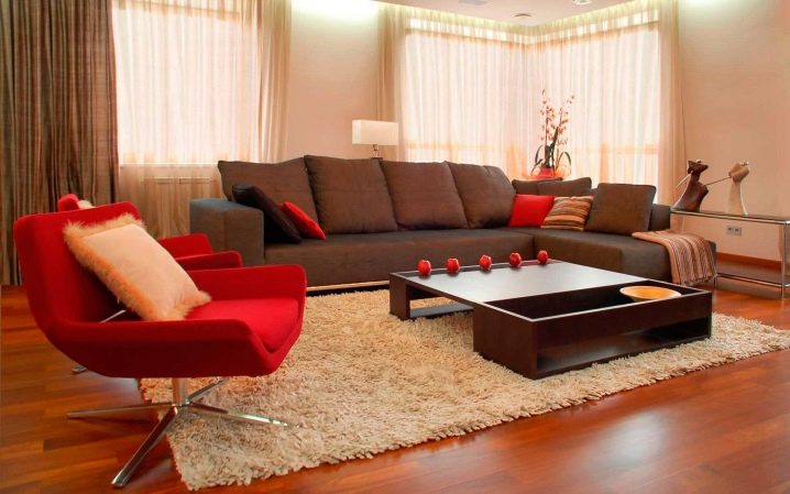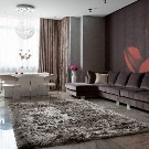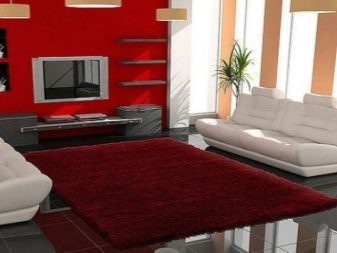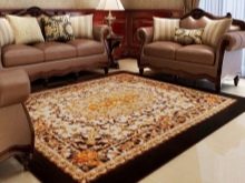 За зала с полирани мебели е най-добре да изберете проба с дълга коса, която се поставя под мебелите. Трудно е да се грижим за него, но ефектът си заслужава.