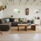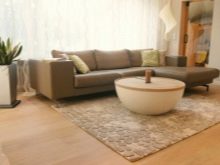 За малки стаи с ъглов диван, добро решение би било да поставите килим в ъгъла точно под мебелите, така че да можете да поставите краката си върху него, когато ви е удобно на дивана, но той не „напуска“ от от време на време. В този случай мебелите ще действат като фиксиращ елемент за килима, като го държат на място, а самият килим ще добави необходимия комфорт по време на събиранията в хола..