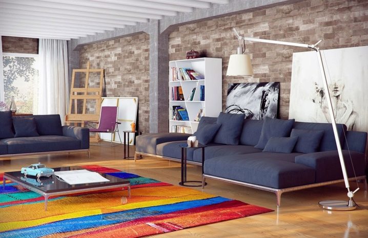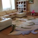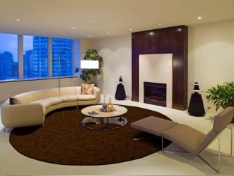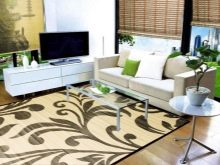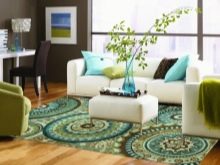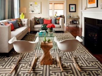 Дневните в апартамент обикновено не са много големи, така че най -доброто решение е да поставите килим в центъра. Ако също е на практика със същия размер като стаята, изобщо няма други опции. Тази опция е универсална и скучна в същото време, не всеки ще я хареса..