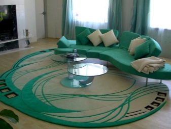 Изгладени форми, напротив, поради ефекта на мек поток, те са в състояние да направят стаята по -голяма, да разширят нейната площ. Според този модел погледът се плъзга свободно, без да се блъска в ъглите. Кръглите килими с вълнообразен ръб обикновено се възприемат като по -хармонични.