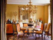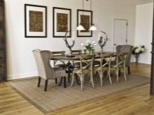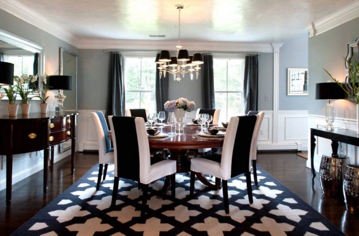 В комбинираната трапезария си струва да намерите килим, който повтаря формата на масата и да я поставите директно под масата. Това ще помогне да се съсредоточи вниманието върху зоната за хранене и в същото време да накара вечерящите да се чувстват по -комфортно по време на хранене..