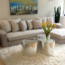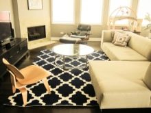 Когато избирате килими като подложка за мебели, не забравяйте златното правило: килимът в никакъв случай не трябва да бъде по -малък от мебелите по дължина или ширина. В противен случай няма абсолютно никакъв смисъл да го купувате. Модно е, когато килимът под мебелите е избран със същия размер като мебелите и е леко изместен, създавайки интересна геометрична илюзия.