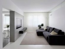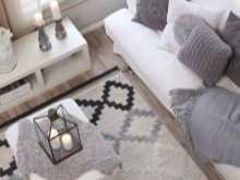 В скандинавските всекидневни можете да поставите тънък килим без влакна със светъл нюанс или да изберете кожа с мека дрямка и да я поставите не под мебелите, а само за ходене по нея, например между дивана и телевизора.