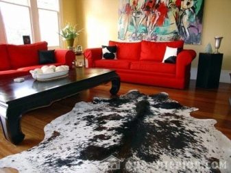 Използването на кожи е възможно и в етнически интериор, обаче в този случай си струва да изберете екзотични екземпляри: зебра: леопард, лъв.