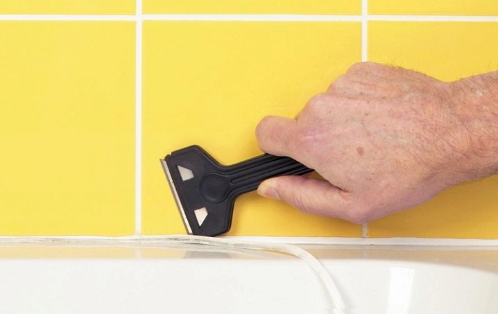 Бензин или керосин също могат да се използват като разтворител. И тук не се изискват специални умения. Нанесете бензин върху памучен тампон или памучен тампон, за да избегнете попадане на течност върху повърхността на самата плочка. След това трябва да избършете добре замърсената зона, докато силиконът омекне. След това веществото трябва да се почисти с стъргалка..