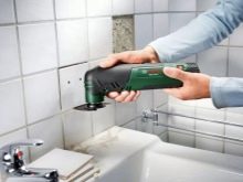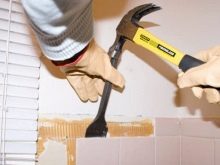 Например, старите керамични плочки се отстраняват с перфоратор. За да направите това, на инструмента е инсталирана плоска дюза – длето. Демонтирането на плочките трябва да започне отгоре.. Така при отстраняване на долните редове керамика няма да има падане на голям горен слой..