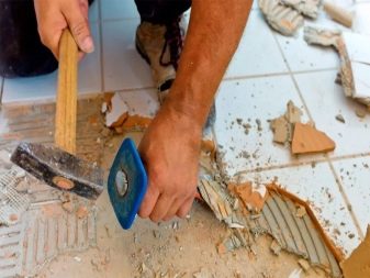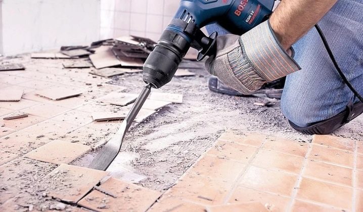 Керамичната плочка се демонтира с перфоратор заедно със скрития под нея разтвор.