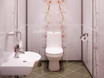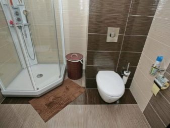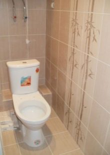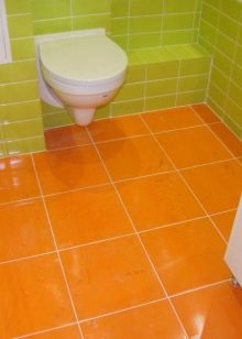 За малка стая е най -добре да изберете плочки от светли нюанси или можете да комбинирате няколко тона наведнъж: светли и тъмни. Фугиращият разтвор за фугите се избира бял или по -светъл от подовата плочка с няколко тона. Този подход ще помогне за визуално увеличаване на пространството на тоалетната..