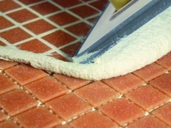 След това трябва да нанесете специална фугираща смес върху шевовете. Този процес трябва да се извършва внимателно с гумена шпатула. Излишният излишък се отстранява със суха кърпа.