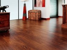 Паркетът и инженерните дъски са подходящи за всеки интериорен дизайн. Ако стаята е декорирана в класически стил, изберете панели от „спокойни“ тонове с червени или светлокафяви нюанси. Те ще подчертаят строгостта и сдържаността на интериора: