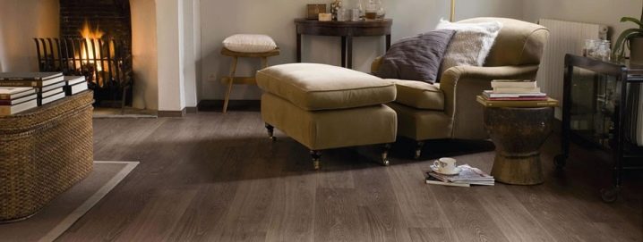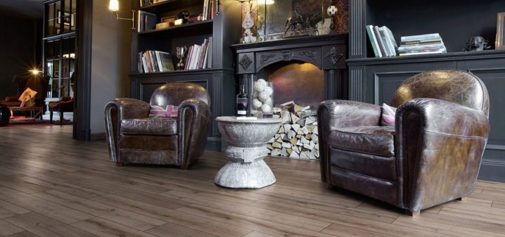 - В този случай квадратните ламели перфектно имитират подове от масивно дърво. Богатият, тъмнокафяв благороден цвят на ламината веднага привлича вниманието с богатия си вид. Такова подово покритие не само подчертава изтънчеността на целия интериор, но и се превръща в неговия акцент..