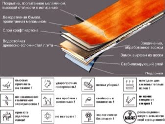 Тези предимства показват, че повърхността на ламината може да издържи на почти всяко натоварване, не се поддава на абразия и вода, не избледнява или се влошава. Също така, материалът е доста лесен за използване, има антистатични свойства, петна и замърсявания лесно се отстраняват от него. Също така се отбелязва добра химическа устойчивост.
