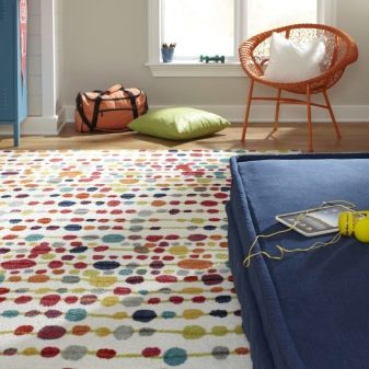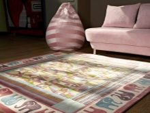 - Детската стая се счита за специално място в къщата., следователно килимът трябва да бъде подбран внимателно за нея. Докато играят, децата могат да разливат боя по пода, да потъпкват пластилин или да изпуснат шоколадови трохи. Следователно за такива помещения са подходящи продукти с къса, но плътна купчина. Напоследък в продажба има специални колекции от килими за деца, те са декорирани в ярки цветове с рисунки на любимите си герои..