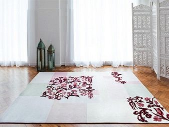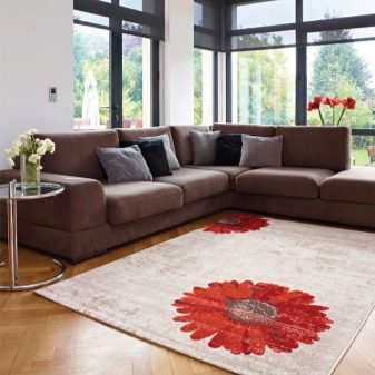За да може килимът хармонично да се впише в общия вид на стаята, е необходимо предварително да се измери площта на пода, която ще бъде украсена с покритието, и да се вземе решение за стила на дизайна му. Отличен избор за просторна стая би бил килим 2,5 × 2,5 метра. Може да се постави както в хола близо до камината, така и в спалнята. Единственото нещо е, че килимът трябва да излиза извън леглото и да покрива напълно зоната на дивана.