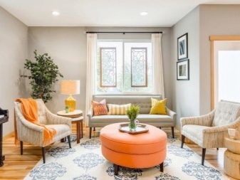 Комбинацията от цветове и шарки по завесите с дизайна на килима изглежда много добре. В същото време, когато цветът на килима съвпада с цвета на стените, той може да изглежда много скучен и безинтересен. Също така печеливш вариант е да комбинирате цветовата схема на килима с дизайна на други декоративни елементи: възглавници за диван, тапицерия на столове, фигурки, саксии за цветя. Що се отнася до основната настилка, ще бъде хубаво, ако килимът е само на един -два тона по -тъмен..