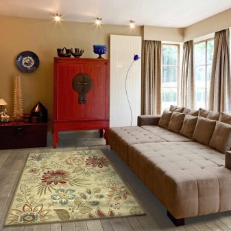 - Обърнете внимание на размера. Голям килим с дълбоки купчини не е подходящ за малки пространства. Това само ще скрие пространството още повече. По -добре е да закупите малки красиви килими, които да изглеждат не по -лошо от по -големите модели. И обратно: за просторни стаи най -добрият вариант биха били платна с подходящ размер..