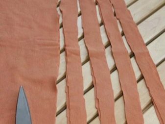 За да направите това, използвайте всички ненужни плетени елементи (тениски, пуловери, тениски). Нарязват се на ленти, така че да са възможно най -дълги. Ширината се избира от вас. След това те трябва да бъдат опънати, така че ръбовете да са увити и да се получат сбруи..