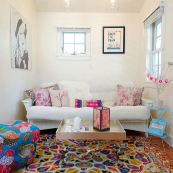 Варианти с ярки шарки и цветове са подходящи за детската стая. Тя трябва да бъде с геометрична форма, например квадрат. Поради необходимостта от често почистване се препоръчва да изберете модели с къса дрямка.