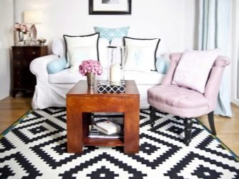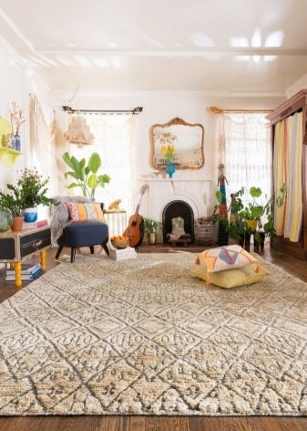За хола е важно успешно да комбинирате килима с общия стил и мебели. Различни форми и цветове са добре дошли в тази стая..
